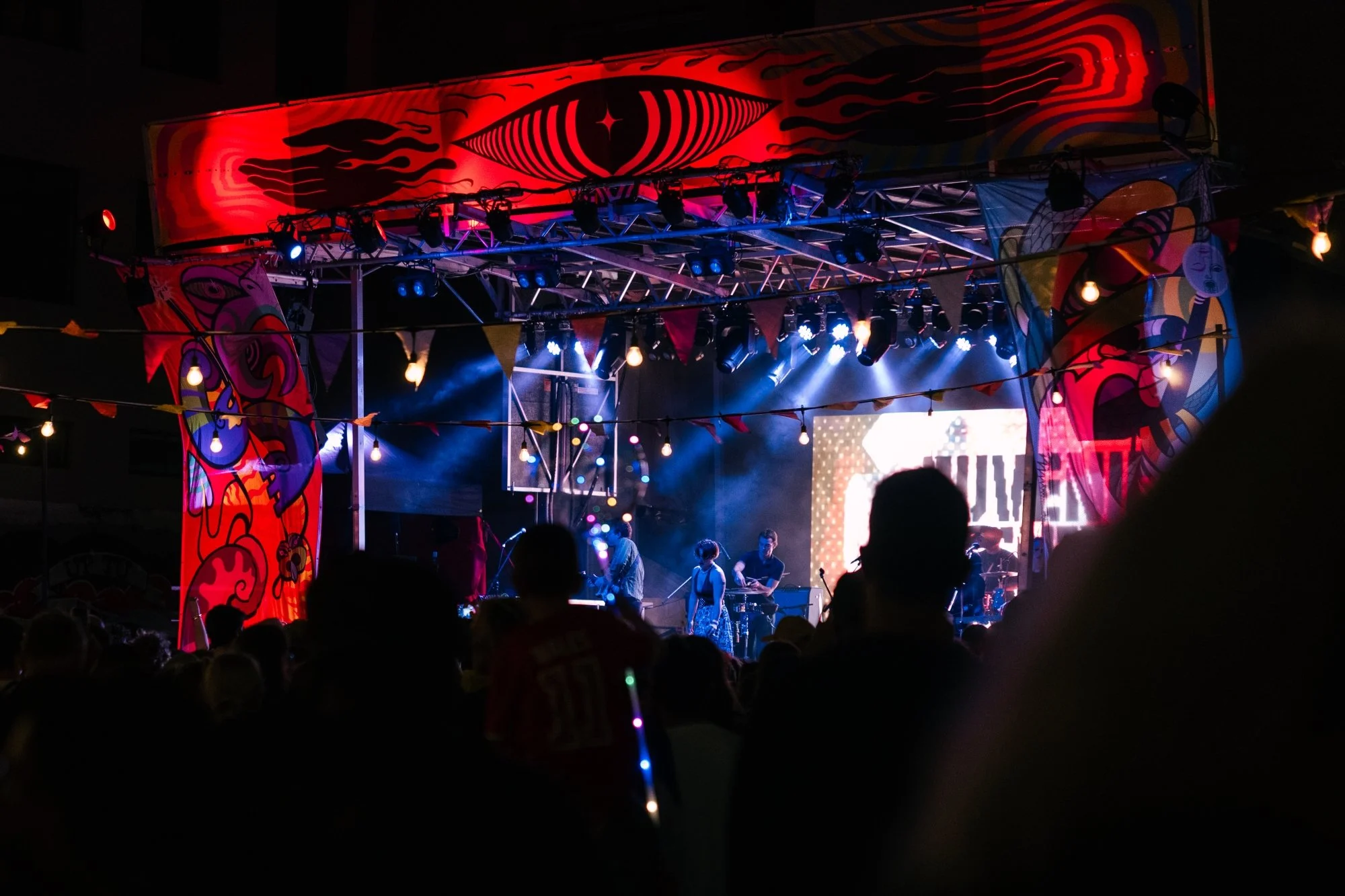 I was really lucky to be selected to create a bespoke seductive LED screen art commission for GUTHEALTH’s set on the Wellington Airport Ngā Taniwha Stage.